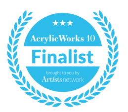 New to acrylic landscapes as of 2021, she debuted with an honorable mention in AcrylicWorks 9 : The Best of Acrylic and has since been a finalist in issues 10, 11 & 12. She is also an avid watercolorist, having 2 pieces in the Ohio Arts Council collection.